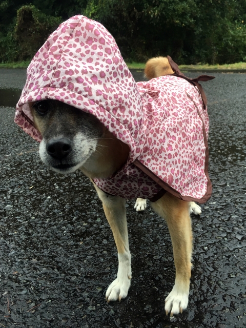 And she wore a hooded raincoat and mask.