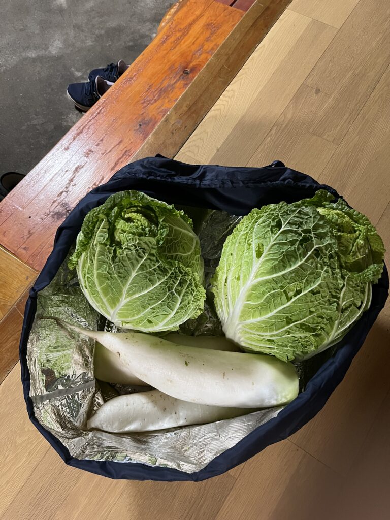 On Sunday our neighbor gave us some winter vegetables. They were fresh out of the soil from his fields. We were very grateful because vegetables are so expensive now. I wonder if we will try growing vegetables in the next few years.