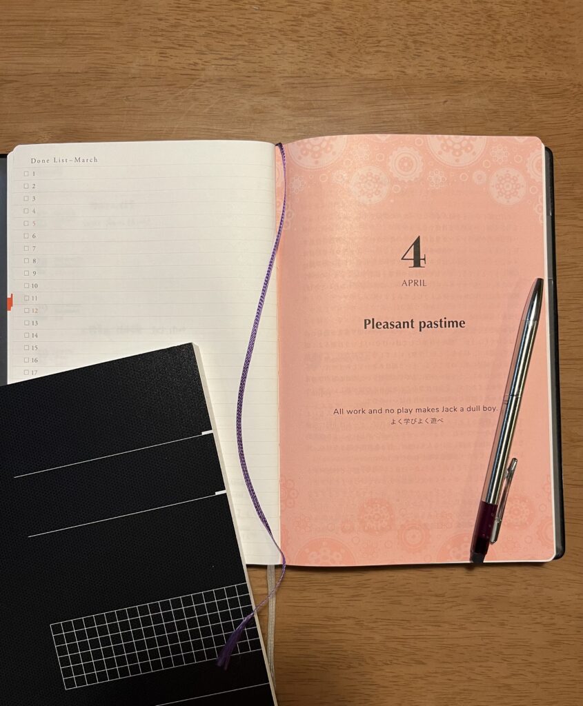I bought a schedule book this year for my English studies, but I’ve not been using it well yet. First, I’ll make time to look at it every morning and memorize the word or phrase of the day. Then I’ll start my day by reading that monthly column.